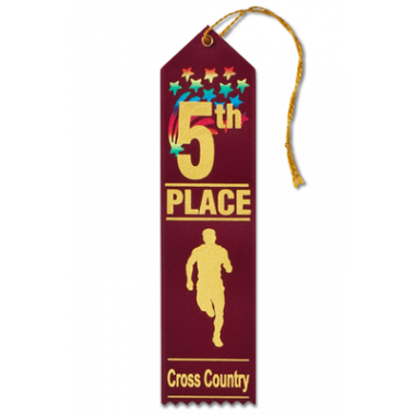 Stock 2x8 Cross Country ribbons with bright multi-color stars and a classic bold runner graphic will be a hit with the runners and easy on your cross country awards budget! Event tag for recording details and a string for hanging are included. We combine the quantities from each title to give you the best price possible.
