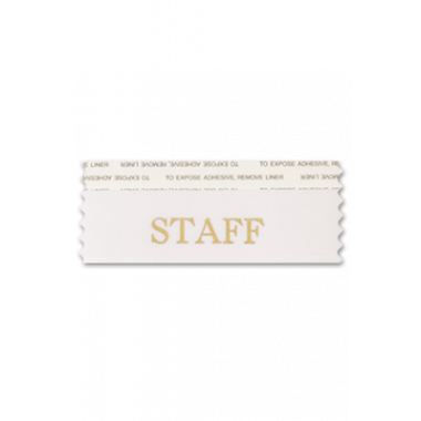 Traditional size 1 5/8" x 4" stackable style horizontal badge ribbons with an adhesive strip on the front printed with metallic gold foil and a serf font. We combine the quantities from each title to give you the best price possible.