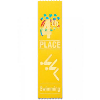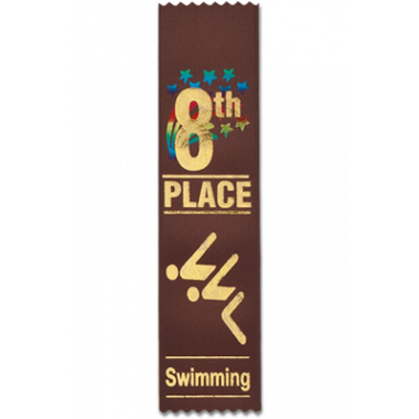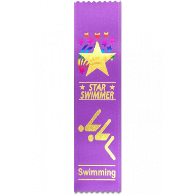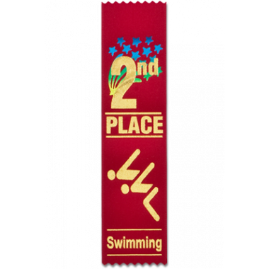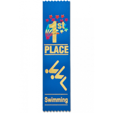 Stock 2x8 swimming ribbons with bright multi-color stars and a classic "Olympic" style swim graphic will be a hit with the your swimmers and easy on your swim meet awards budget! We combine the quantities from each title to give you the best price possible.